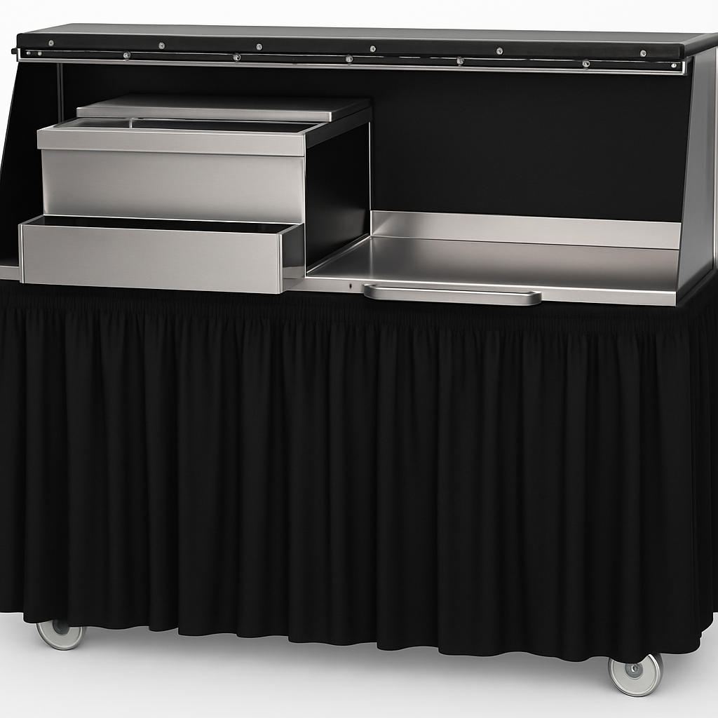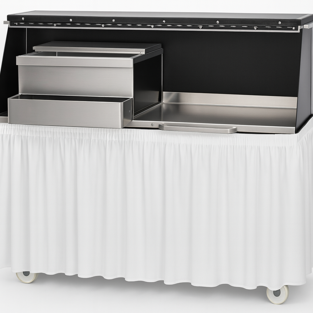 The LaCrosse StowAway® Portable Bar is the ultimate solution for flexibility and functionality at any event. Its unique patented design allows you to easily transport it from poolside to catered parties or banquet halls. When not in use, it conveniently stores in just 2ft² of space. A black or white skirt is included, making it a stylish addition to any occasion.
